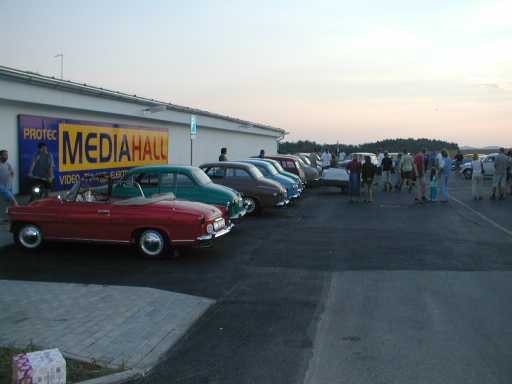 Jak už jsem napsal, hlavní logistické vozidlo přivezlo dva sudy a kromě nich ještě grill na maso, takže o potravu a zábavu jsme měli postaráno. Pravda - někteří účastníci měli neuvěřitelnou žízeň a tak jsme museli kupovat ještě jeden sud navíc, ale všechno se zvládlo. V sobotu byl na programu výlet do blízkého muzea staré techniky v Humpolci, večer jsme pak strávili kolem grilu při zpěvu za podpory Alvovy kytary. Počasí nám víc než přálo, po oba víkendové dny bylo pekelné vedro a tak jsme s povděkem využívali přilehlý rybník. Srazu se celkem zúčastnilo 32 posádek, 31 jich přijelo s vozidly s okřídleným šípem ve znaku a jedna Saabem 90. Co se týká typů, skladba byla pestrá - zastoupeny byly stroje Škoda 440, 445, 450, Octavia, Felicia, 1201, 1202, 1000 a 100 a to v různých verzích. Ještě se tam vystřídalo několik dalších starých aut, která se na nás přijela podívat - jeden stejšn 1202, jeden tudor 1101, stará Pragovka a Alfa Romeo. Celá akce se (jako vždy) nesmírně povedla a všem zúčastněným patří velký dík.